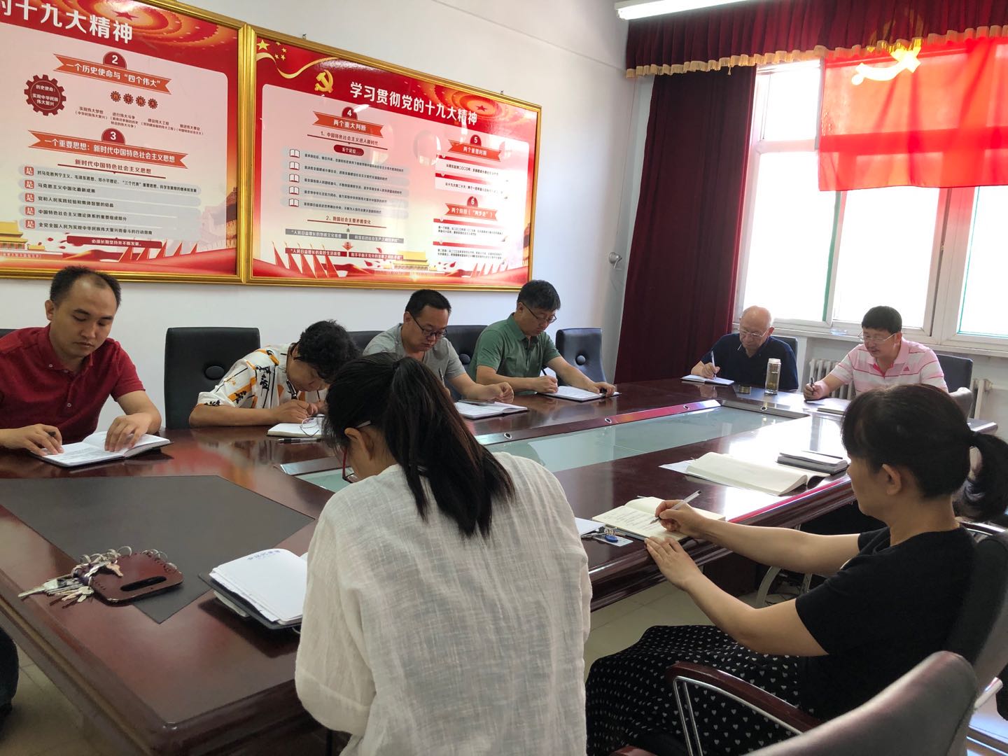 7月6日上午继续教育学院党总支在学院会议室召开第四次理论学习中心组扩大会议,会议学习主题为学习贯彻习近平总书记视察山西重要讲话重要指示。会议由党总支书记郝晓东同志主持,学院党员群众列席。