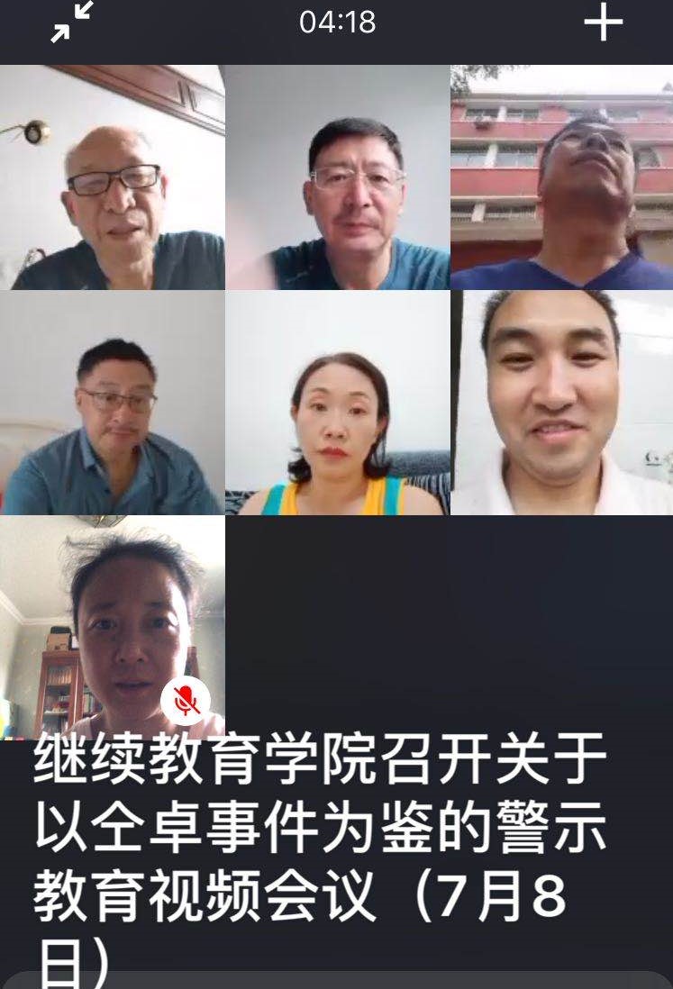 根据省教育工委工作部署和校纪委《关于以仝卓事件为鉴开展警示教育的通知》的要求,继续教育学院党总支在7月8日下午召开全体党员视频会议,党总支书记郝晓东同志主持会议。