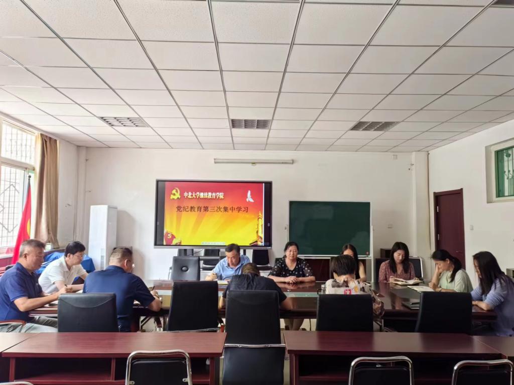 2024年6月11日,学院党总支开展党纪教育第三次集中学习,由党总支书记药宏亮同志主持,学院副院长吴其州同志领学第八章、第十一章(第94-158条)。