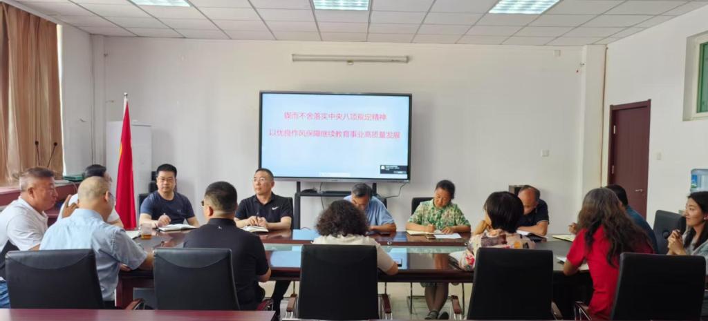 为扎实推进贯彻中央八项规定精神学习教育走深走实,持续深化作风建设,进一步提升全体教职工廉洁意识,7月1日,学院党总支书记药宏亮以“锲而不舍落实中央八项规定精神,以优良作风保障继续教育事业高质量”为主题,为全院党员干部讲授专题党课。驻校纪检组兰东明同志到会指导。