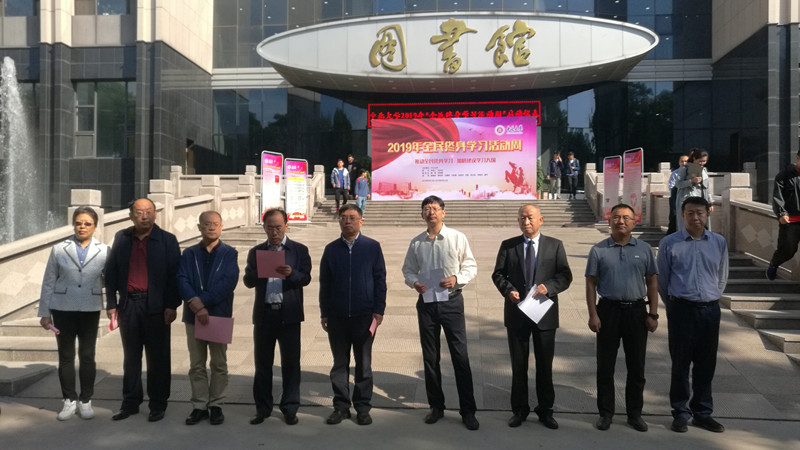 9月16日上午,中北大学“2019年全民终身学习活动周”启动仪式在图书馆前成功举行,薛智副书记、苏铁熊副校长、继续教育学院、宣传部、图书馆、校工会、校医院、离退休管理处、马克思主义学院、校团委、 学生处等单位负责人参加了启动仪式 。仪式由继续教育学院郝晓东院长主持。