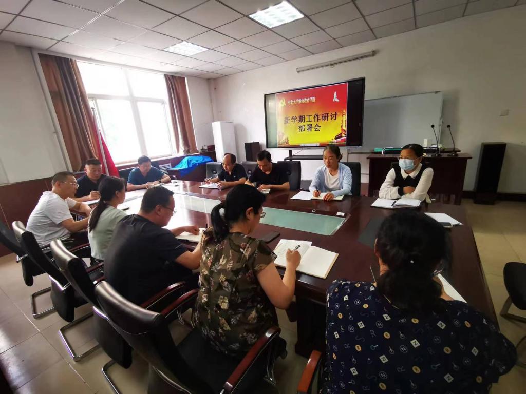 9月3日下午三点,继续教育学院按照学校《关于召开新学期工作研讨部署会的通知》要求,在学院会议室召开了本学期工作研讨部署会议,会议由学院院长郝晓东同志主持,全体教职工参加了会议。