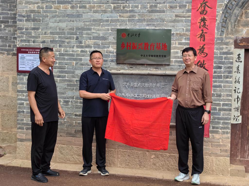 6月21日,中北大学继续教育学院乡村振兴教育基地揭牌仪式在武乡县韩北镇石圪垤村举行。学院党总支书记药宏亮、院长郝晓东、综合办公室主任樊毓、学院客座教授李建军,武乡县韩北镇党委副书记、镇长焦大伟等出席揭牌仪式。