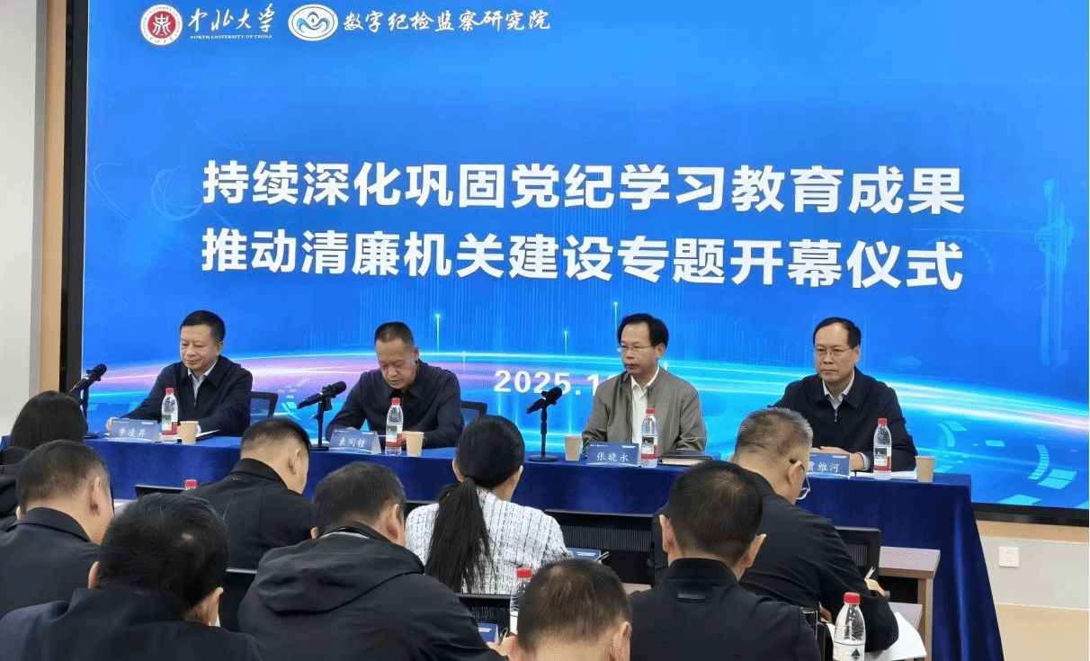 2025年10月15日上午8:30,“持续深化巩固党纪学习教育成果,推动清廉机关建设”专题培训班开班仪式在中北大学环境与安全工程学院一层会议室隆重举行。此次培训由山西省自然资源厅、山西省林业和草原局、山西省地质勘查局联合主办,中北大学承办,数字纪检监察研究院具体执行。共有117 名来自相关单位的学员参会。此次培训既是贯彻落实党中央、省委关于全面从严治党部署要求的具体举措,也是提升自然资源系统纪检干部政治素养和履职能力的重要契机,更为清廉机关建设筑牢人才基础。