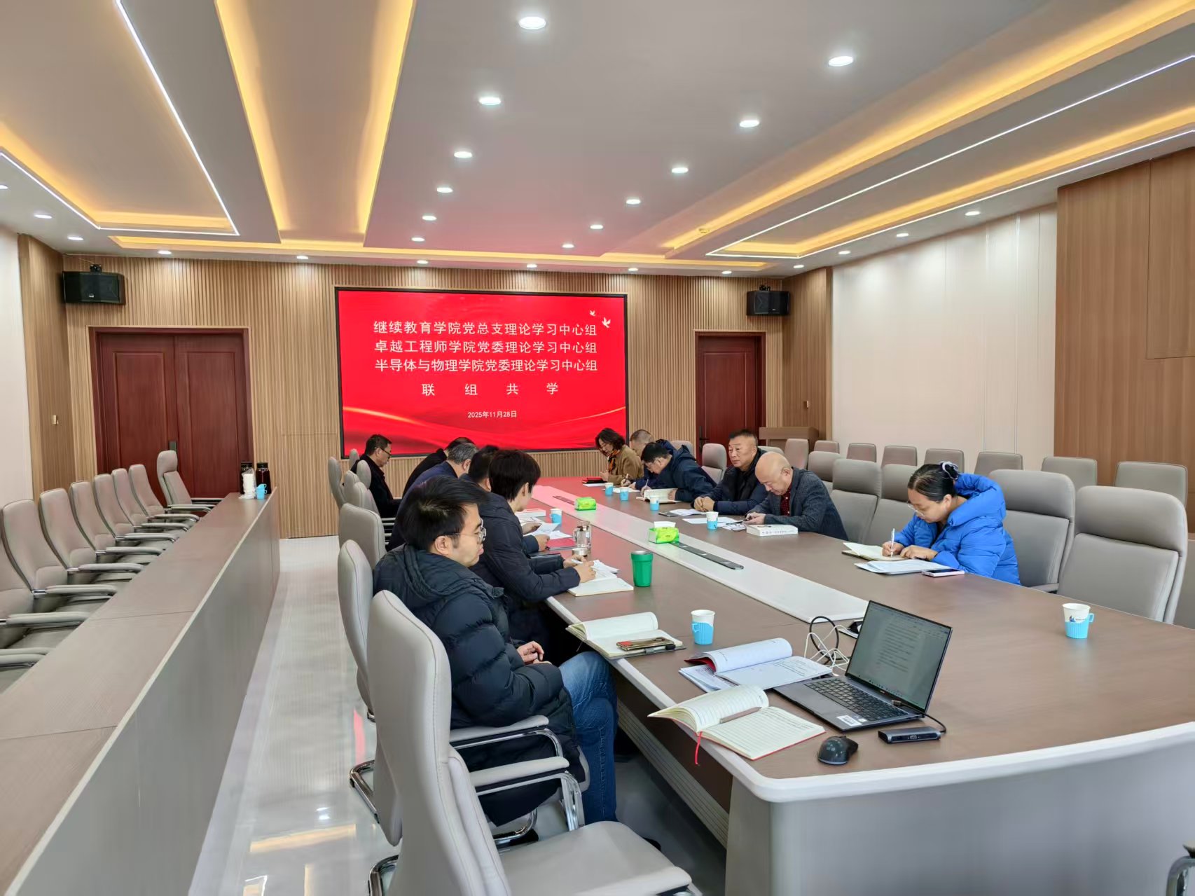 为深入学习贯彻党的创新理论,落实学校高水平科技发展大会精神,2025年11月28日上午9时,继续教育学院党总支理论学习中心组、卓越工程师学院党委理论学习中心组与半导体与物理学院党委理论学习中心组在半导体与物理学院332会议室开展联组共学活动。