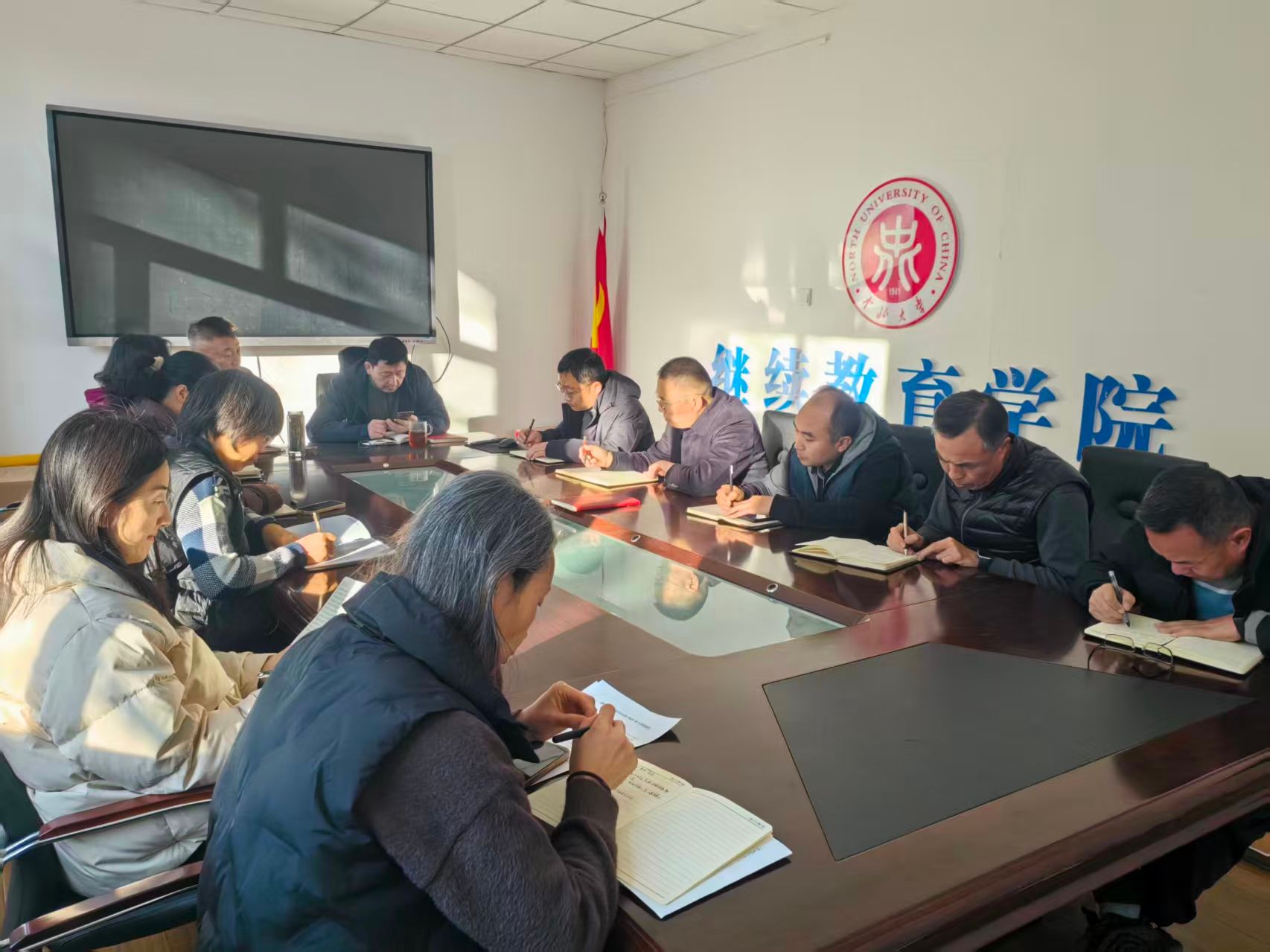 12月4日上午,学院党总支召开中心组理论学习,学习二十届四中全会精神--“怎样理解实施新时代立德树人工程”,并结合学院工作实际开展交流研讨,学院党总支书记药宏亮同志领学有关章节。