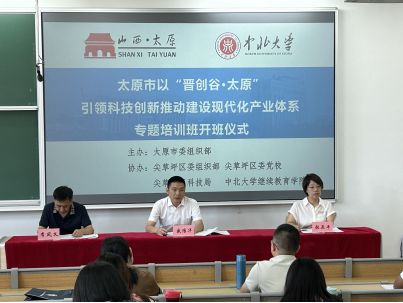 2024年8月28日,由太原市委组织部主办,尖草坪区委组织部、尖草坪区委党校、 尖草坪区科技局、中北大学继续教育学院协办的太原市以“晋创谷·太原”引领科技创新推动建设现代化产业体系专题培训开班仪式在我校举行,太原市尖草坪区委副书记盛维华,太原市尖草坪区委组织部副部长李风义,市委组织部干部教育科科长张亚平出席开班仪式。